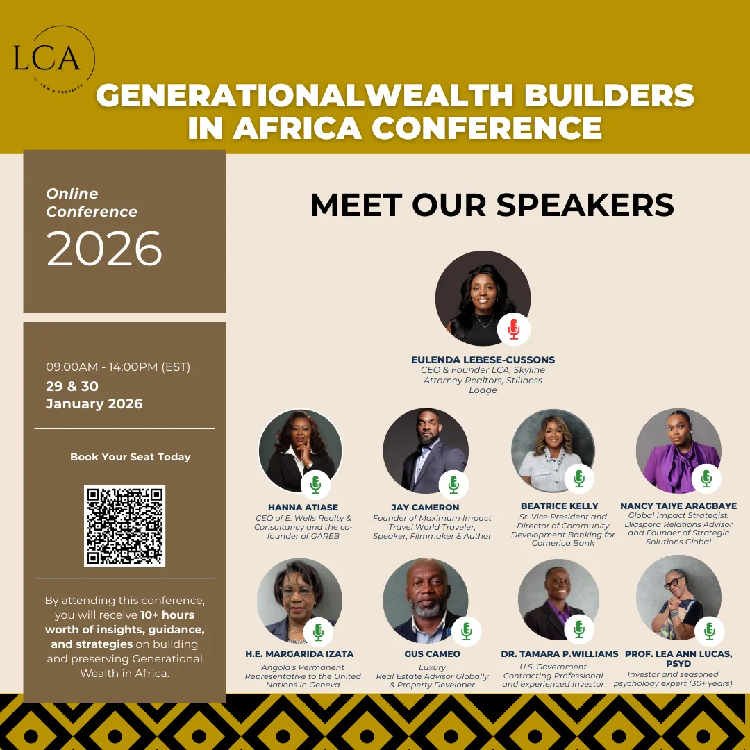 This is a 2-day webinar that is focused on mindset, financial literacy, wealth opportunities within Africa, entrepreneurship, investment strategies, networking and more. This conference is designed for generational wealth builders, investors, and leaders committed to creating and preserving generational wealth in Africa.
